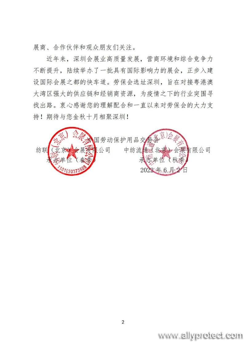 勞保會主辦方始終把切實保障廣大參展商、合作伙伴和觀眾朋友們的身體健康、確保參會效果擺在第一位。對于展會再次延期給大家造成的不便,我們深表歉意。后續(xù)我們將密切關注疫情發(fā)展,并與展館方以及相關部門保持緊密溝通,全力做好疫情防控和各項籌備工作,確保第104屆勞保會成功舉辦。