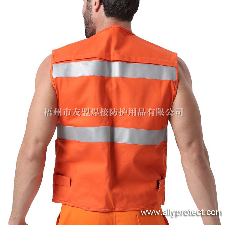 - 產(chǎn)品描述: 耐高溫焊接背心,11安橙防火布,永久阻燃,多口袋設計,方便耐用