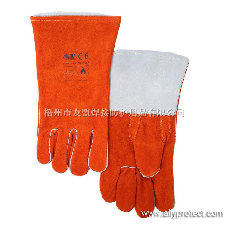 - 產(chǎn)品描述: [ AP ]銹橙色牛二層皮全皮電焊手套,直拇指護(hù)縫設(shè)計(jì),適用于焊接、切割及搬運(yùn)等用途。