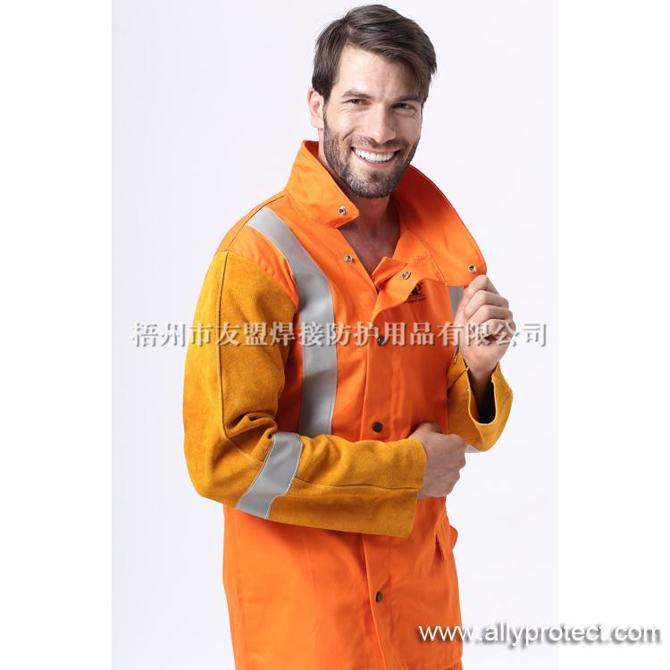 AP-2730 橙色防火布配金黃皮袖焊服-帶反光條AP-2730 橙色防火布配金黃皮袖焊服-帶反光條AP-2730 橙色防火布配金黃皮袖焊服-帶反光條AP-2730 橙色防火布配金黃皮袖焊服-帶反光條