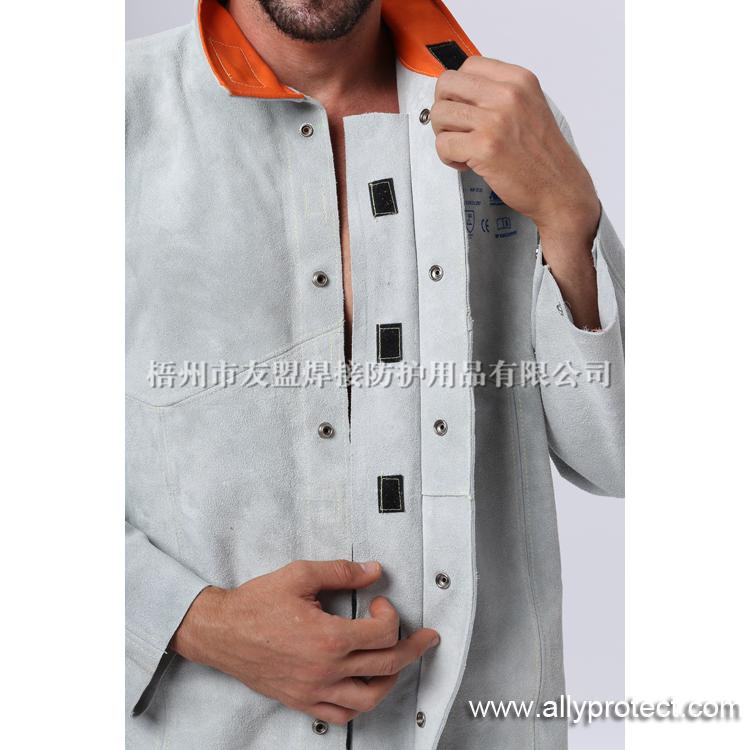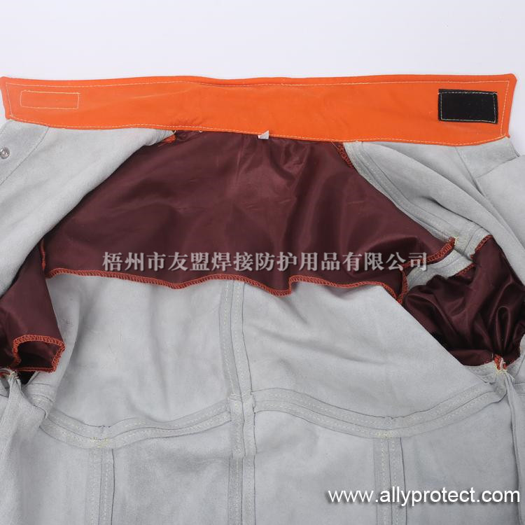前胸防護條設計,防止燒焊飛濺物濺入衣內,雙層皮設計防止撕脫。